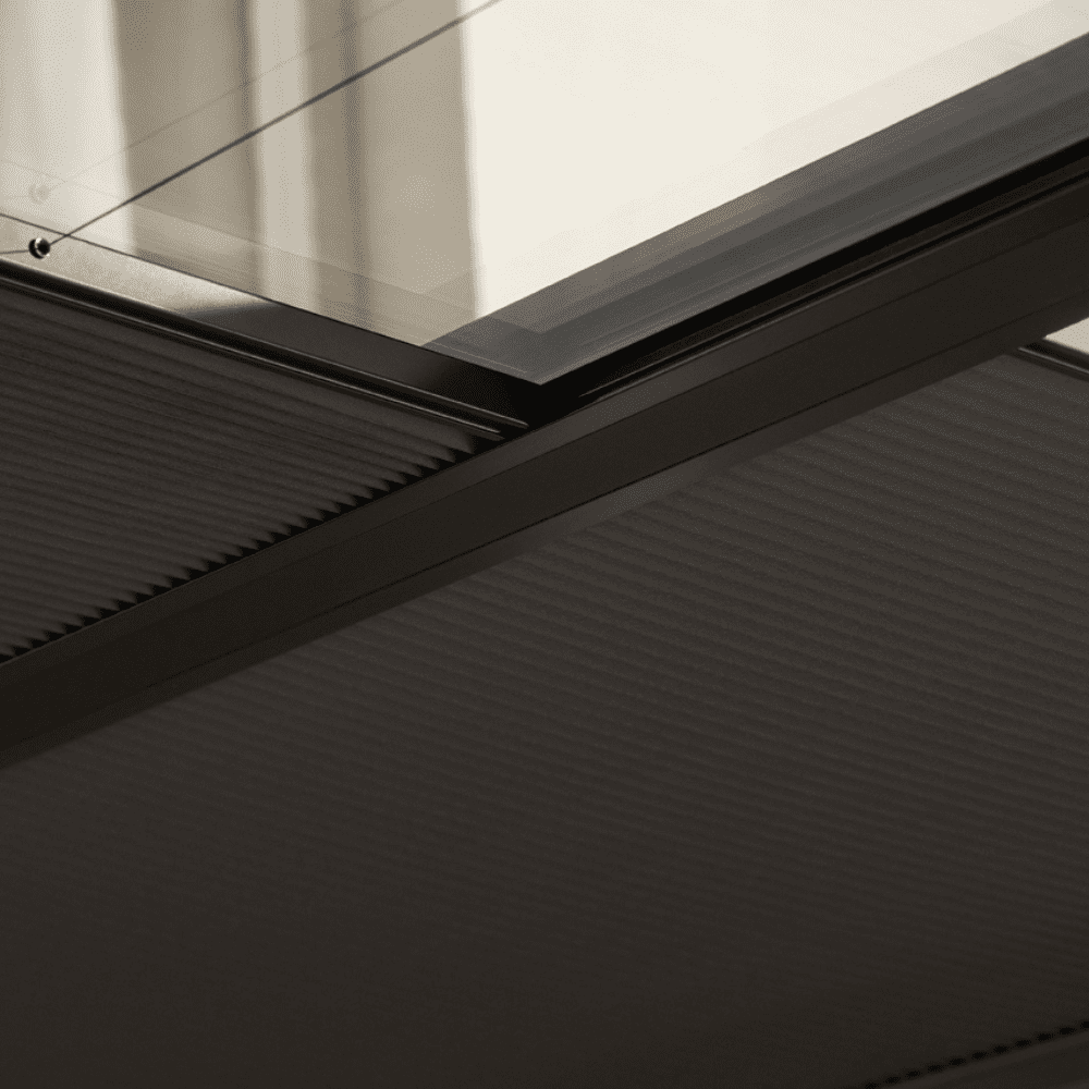 De Splendid terrasoverkapping is geschikt voor het plaatsen onder je bestaande serre of overkapping. Snelle en schroefloze montage tussen de liggers!