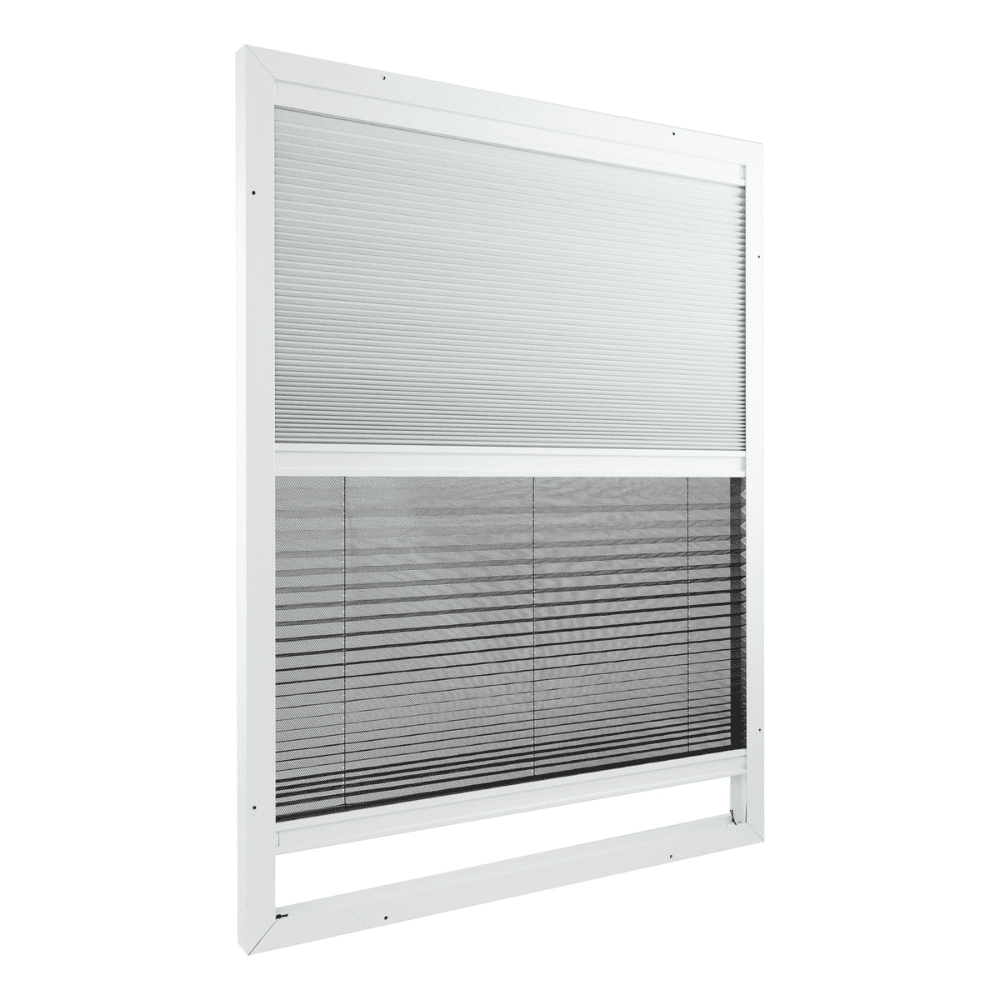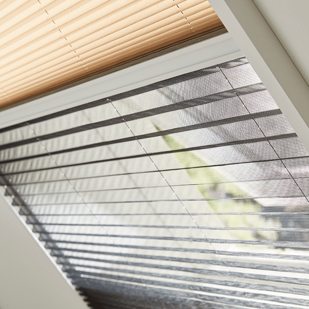 Stijlvol, doordacht ontwerp, de supplente combineert geplisseerd gaas met geplisseerde stof naar jouw keuze, allemaal geïntegreerd in een strak aluminium frame dat perfect past bij houten kozijnen met naar buiten draaiende ramen maar ook bij de welbekende Velux dakramen. Dankzij het unieke touw vergrendelsysteem kun je de supplente in elke gewenste stand positioneren. Bedien het gemakkelijk van boven naar beneden of andersom met ons top-down/bottom-up mechanisme.